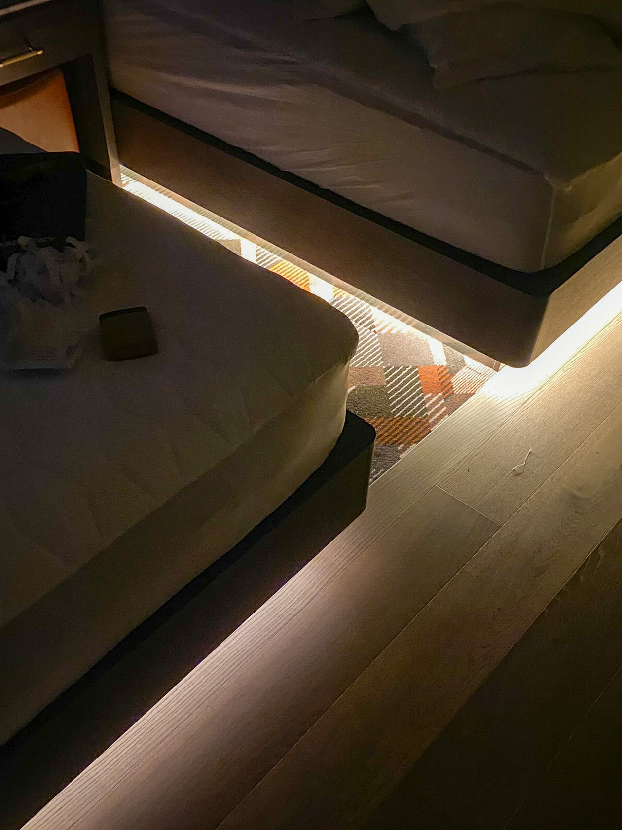 This project was to add lighten underneath bedding to be controlled by motion sensors and voice command.